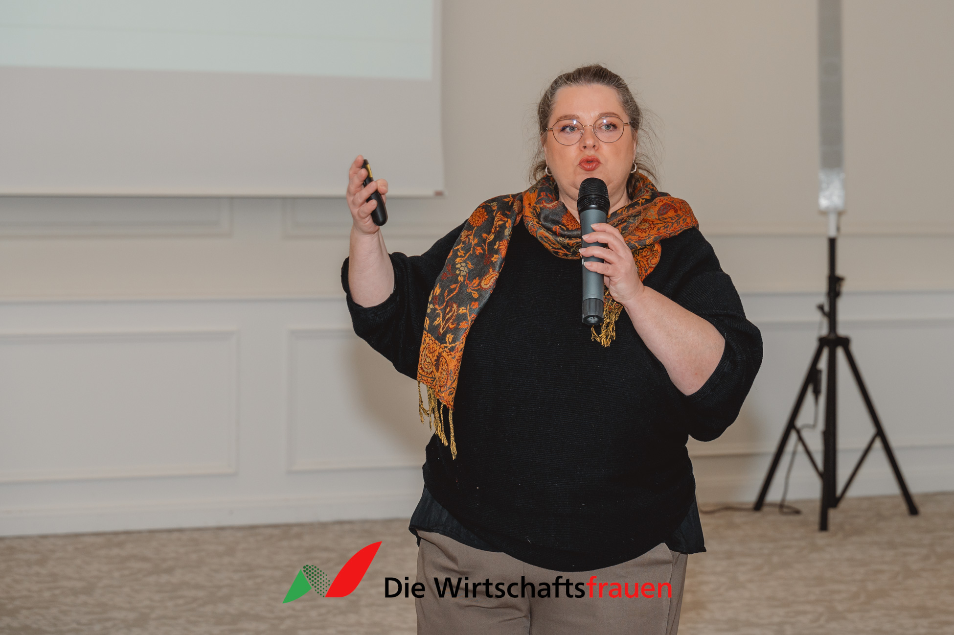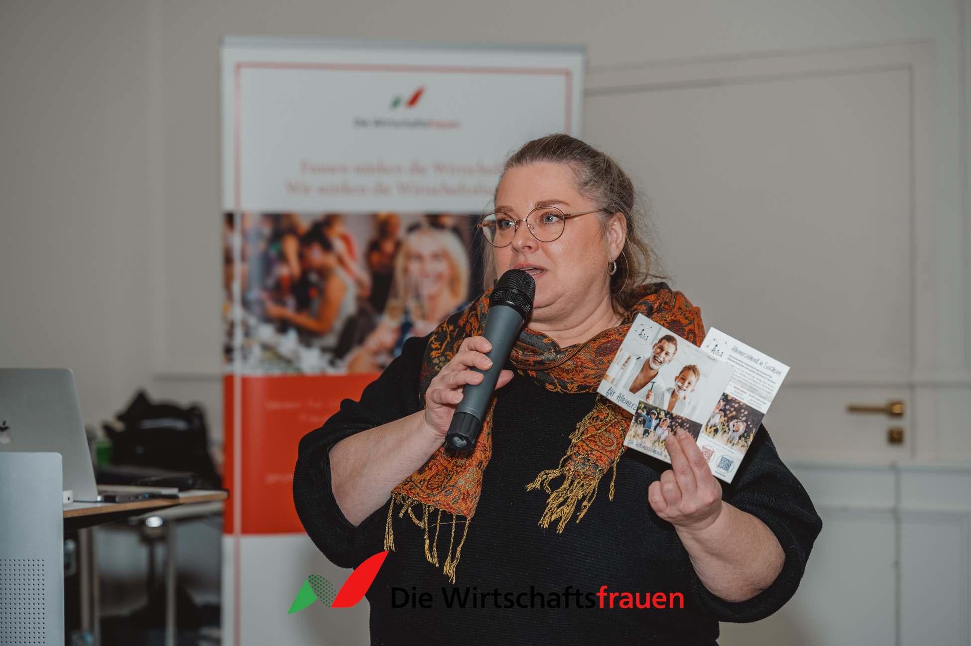 Im Anschluss nahm Anja Wenzel von der zahlensturm GmbH die Teilnehmerinnen mit in die Welt digitaler Strukturen. Unter dem Titel „Upgrade Yourself – Digitaler Vorsprung für Powerfrauen“ machte sie humorvoll deutlich, dass Themen wie Automatisierung, E‑Rechnung, KI-gestützte Buchhaltung oder CRM-Systeme keine lästige Pflicht sind, sondern echte Hebel für Entlastung, Überblick und unternehmerische Freiheit. Digitalisierung wurde hier nicht als Technikfrage, sondern als strategische Führungsentscheidung greifbar.