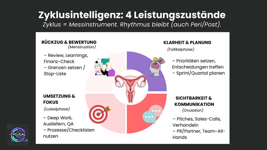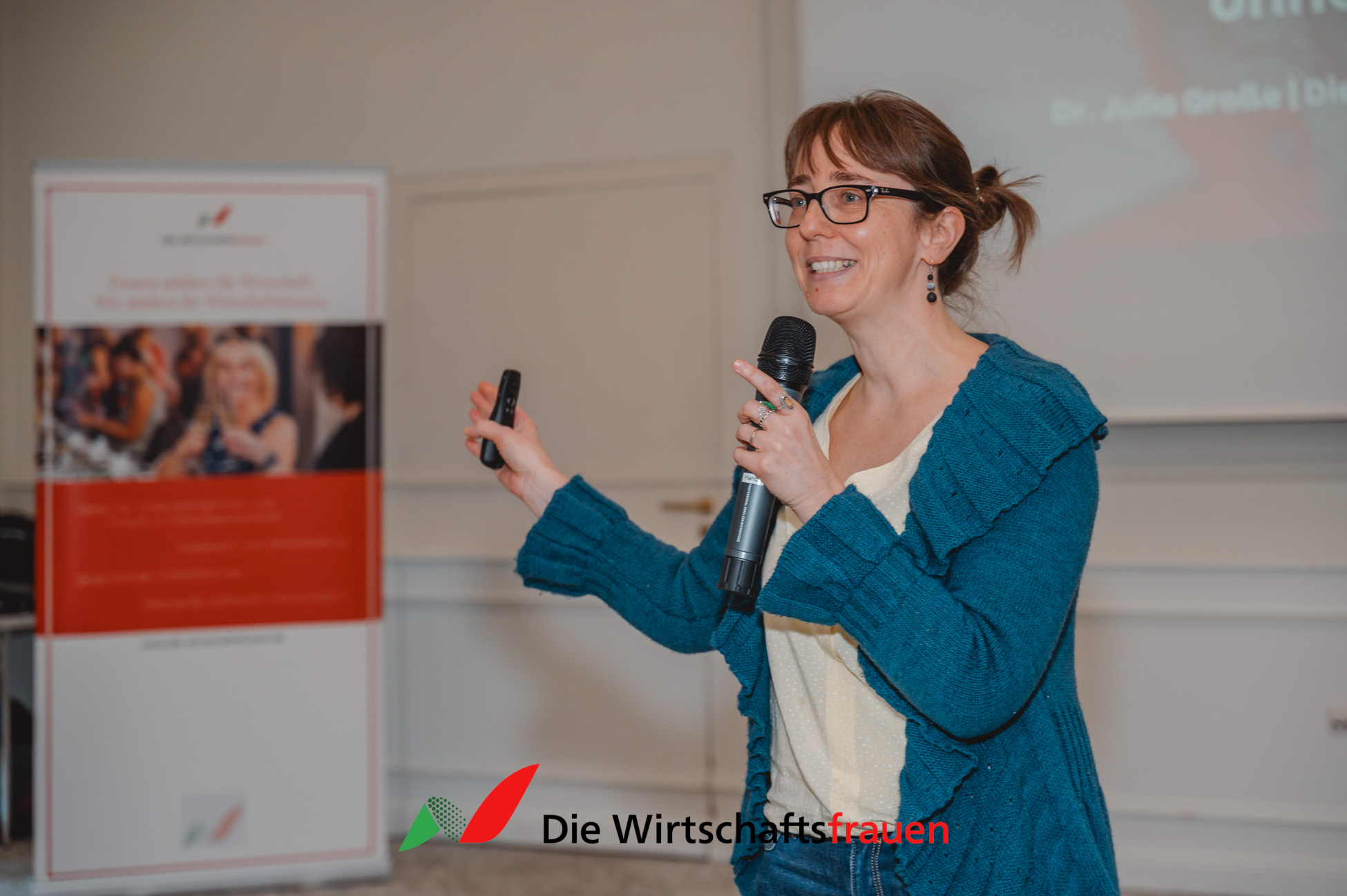 Den dritten Impuls lieferte Dr. Julia Große, Expertin für Hormongesundheit, mit ihrem Vortrag „Zyklusintelligenz und biologischer Rhythmus – ob mit oder ohne Zyklus“. Sie eröffnete einen differenzierten Blick darauf, wie Frauen ihre Energie, Entscheidungsfähigkeit und Leadership stärken können, wenn sie biologische Rhythmen verstehen und berücksichtigen. Besonders eindrucksvoll war der Ansatz, Selbstführung ohne Selbstoptimierungsdruck zu denken – klar, realistisch und alltagstauglich.